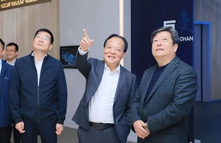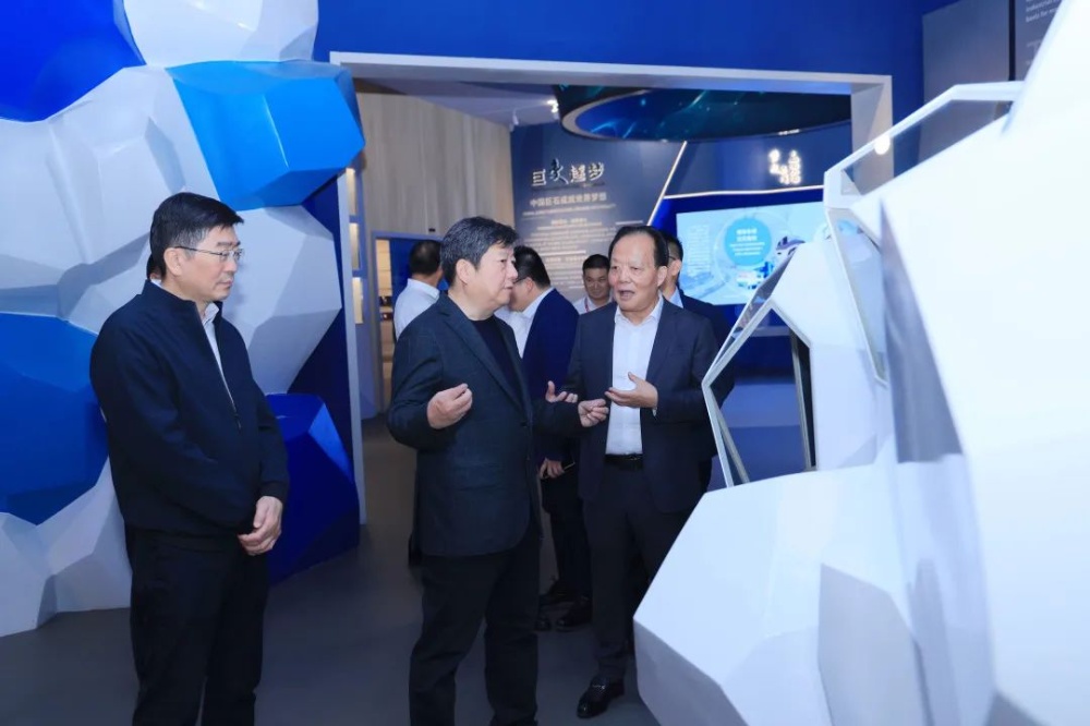 在中國(guó)巨石智慧展示中心,張毓強(qiáng)總裁向黃國(guó)梁總工程師介紹了公司發(fā)展歷程、技術(shù)創(chuàng)新、質(zhì)量管理、產(chǎn)品及應(yīng)用領(lǐng)域等內(nèi)容。