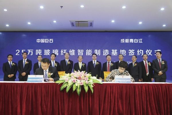 儀式上,中國巨石副總裁、巨石集團(tuán)總裁楊國明與青白江區(qū)副區(qū)長何麗簽訂協(xié)議。中國巨石總裁、巨石集團(tuán)董事長兼CEO張毓強(qiáng),成都市青白江區(qū)委副書記、區(qū)長池勇等領(lǐng)導(dǎo)共同見證。儀式由中國巨石副總裁、巨石集團(tuán)副總裁曹國榮主持。