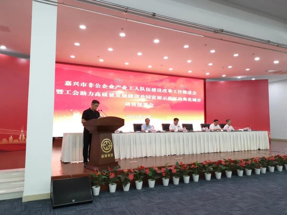 巨石集團在嘉興市工會助力高質量發(fā)展建設共同富裕示范區(qū)的典范城市動員部署會上作表態(tài)發(fā)言
