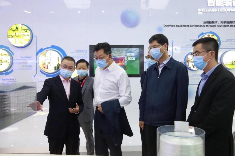 調研組一行在丁成車的陪同下,先后參觀了智能制造基地、智能展示中心,詳細了解企業(yè)發(fā)展歷程、智能制造建設、玻璃纖維運用領域。