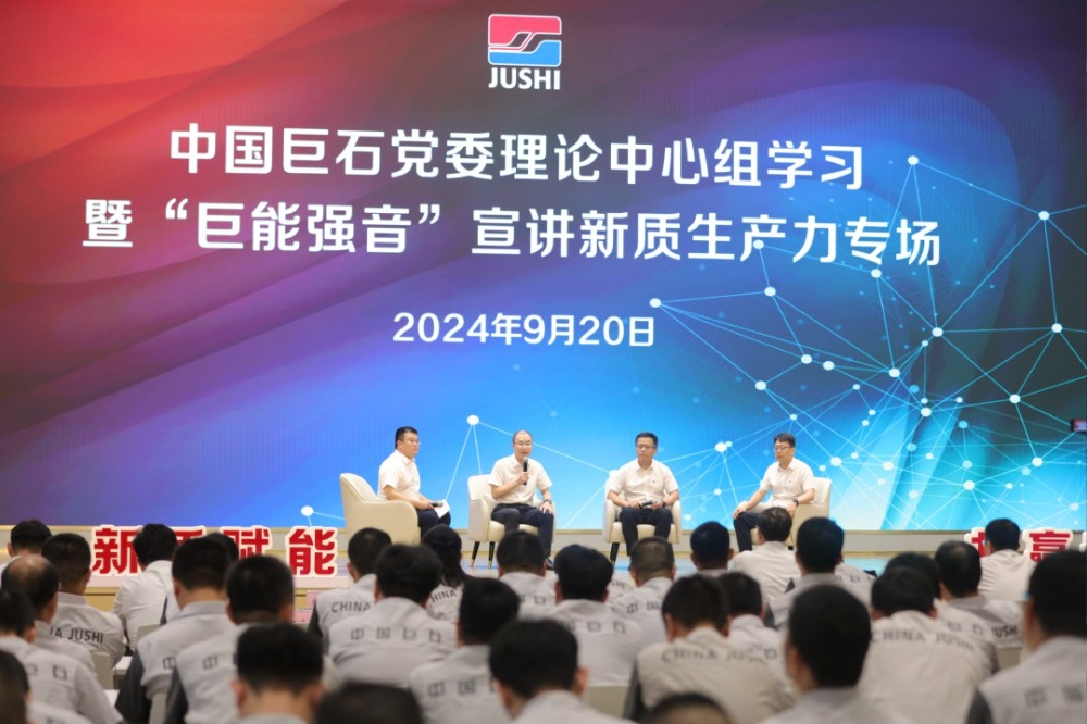 9月20日,中國巨石黨委理論學(xué)習(xí)中心組以“巨能強音”宣講和訪談相結(jié)合的創(chuàng)新形式,開展了一場新質(zhì)生產(chǎn)力專題學(xué)習(xí)研討活動。活動以“新質(zhì)賦能 共贏未來”為主題,學(xué)習(xí)貫徹黨的二十屆三中全會精神,聚焦有效培育和發(fā)展新質(zhì)生產(chǎn)力,持續(xù)提升公司核心競爭力。