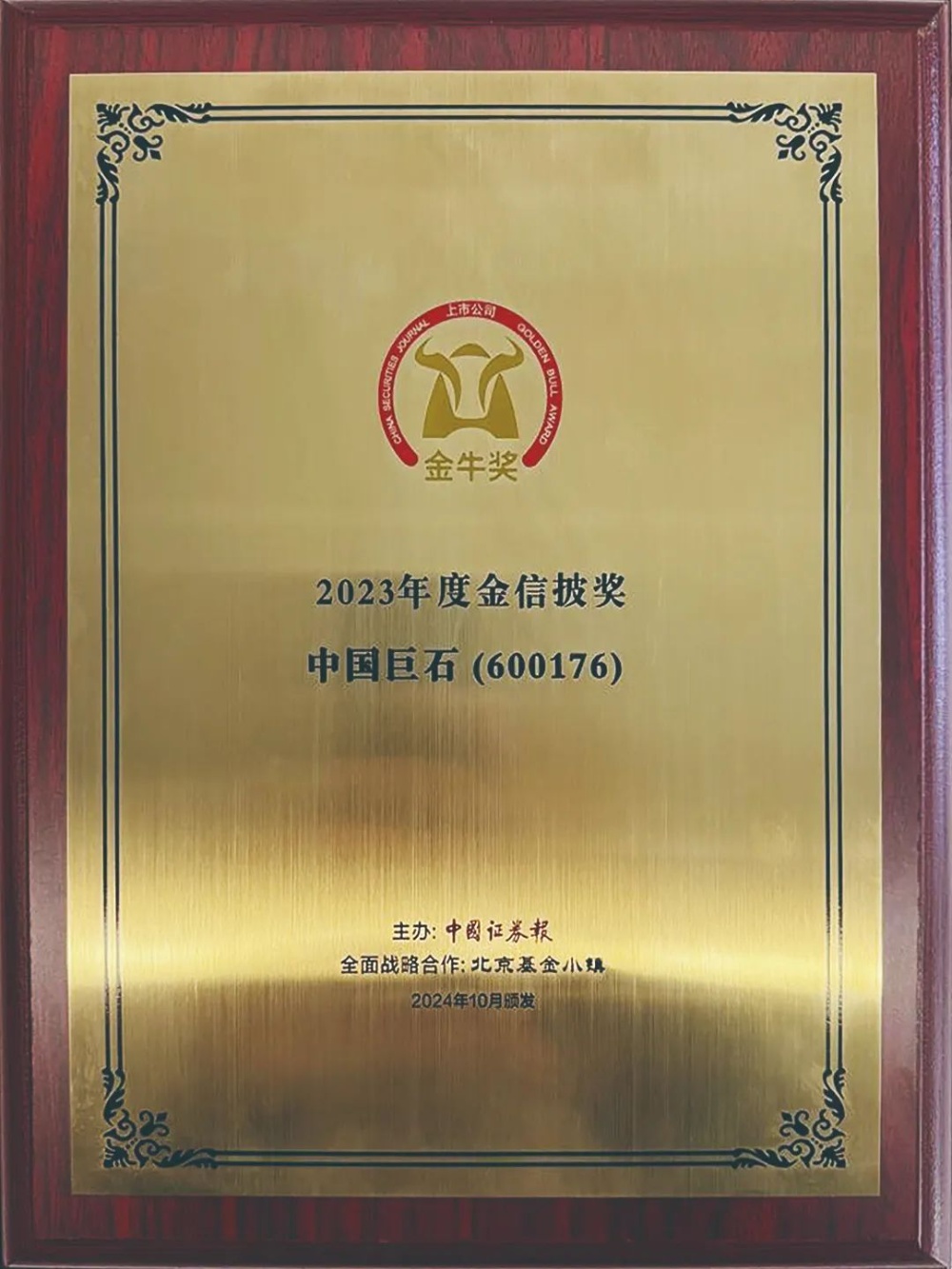 2024上市公司高質(zhì)量發(fā)展論壇暨第二十六屆上市公司金牛獎(jiǎng)?lì)C獎(jiǎng)典禮在江蘇南通舉行。中國(guó)巨石憑借在信息披露、投資者關(guān)系管理等方面的優(yōu)異表現(xiàn),榮獲上市公司金牛獎(jiǎng)“金信披獎(jiǎng)”,體現(xiàn)了資本市場(chǎng)和權(quán)威機(jī)構(gòu)對(duì)公司信息披露、合規(guī)治理、投資者關(guān)系管理等方面工作的認(rèn)可與肯定。