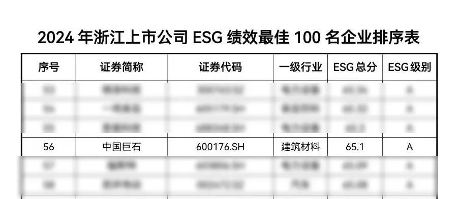 《證券時(shí)報(bào)》發(fā)布“2024中國(guó)上市公司ESG百?gòu)?qiáng)”榜單,中國(guó)巨石榜上有名。