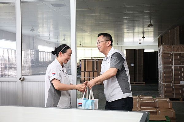 即使現(xiàn)在車間內(nèi)作業(yè)環(huán)境較從前已有較大改善,但烘箱與窯爐作為生產(chǎn)流程中的高溫環(huán)節(jié),它們不斷地“烤驗(yàn)”著員工。楊國明與曹國榮親切慰問熱情堅(jiān)守在烘箱與窯爐的員工,向他們給予最衷心的感謝和親切的慰問,為他們一一送上清涼,叮囑他們要做好高溫季節(jié)的防暑降溫工作,共同對(duì)抗高溫,保障生產(chǎn)。