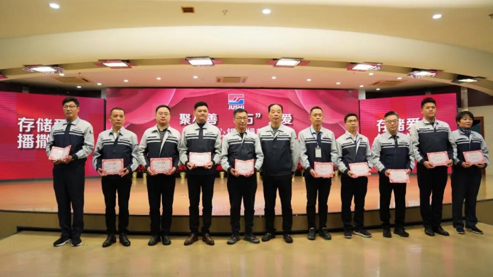 活動現(xiàn)場公布了“2020年度十大愛心大使”名單,中國巨石黨委副書記、紀委書記周森林為愛心大使頒獎。