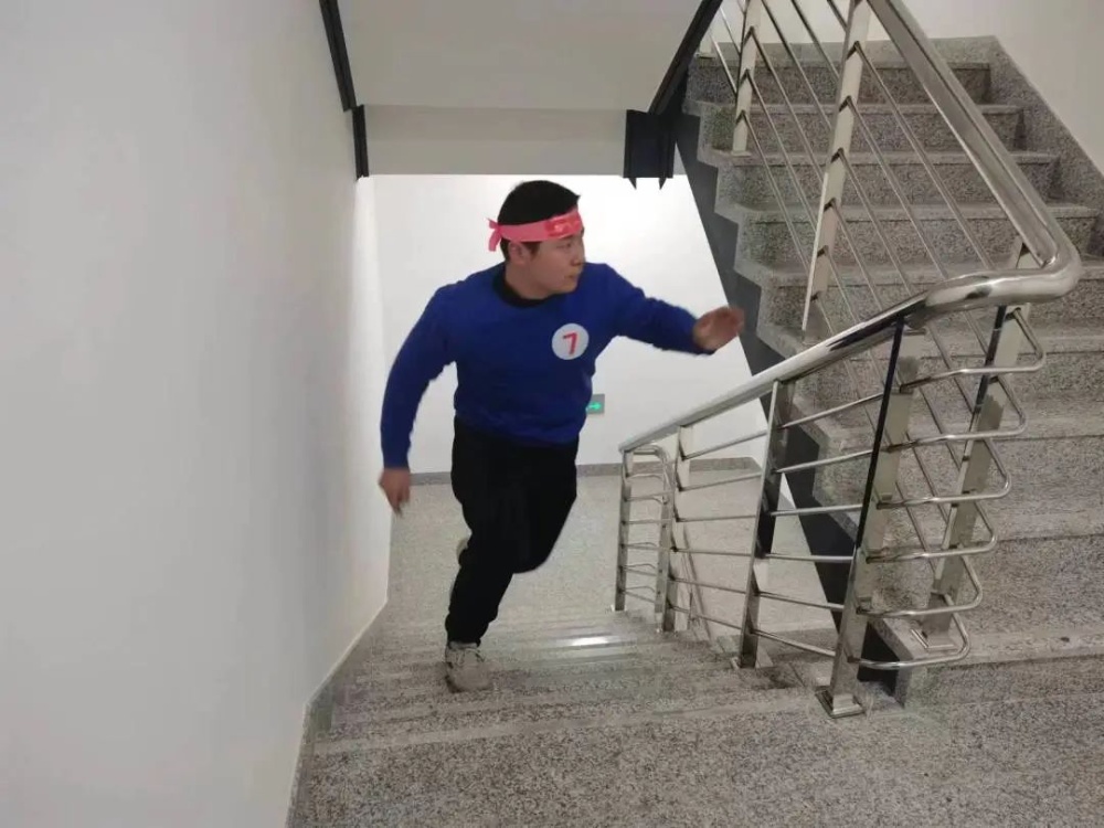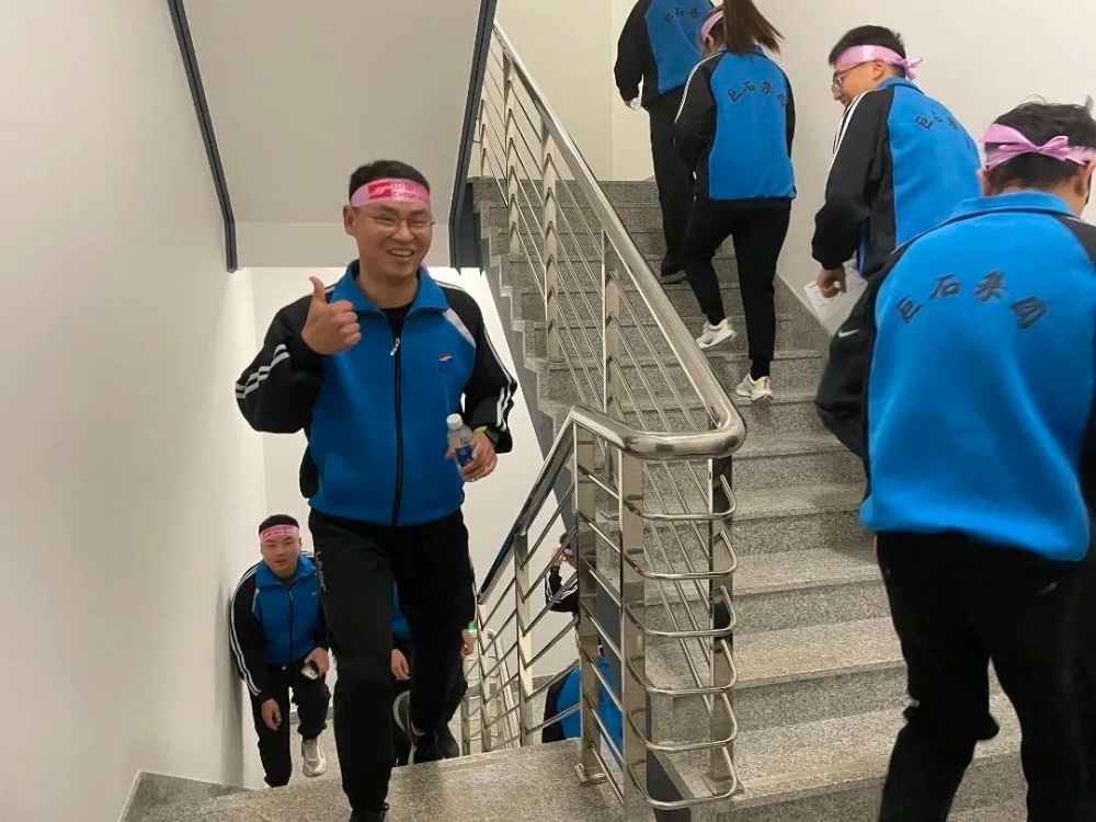 最后的登高比賽各隊(duì)選手賽出了風(fēng)采、賽出了團(tuán)結(jié)、賽出了激情。全面展現(xiàn)了巨石人蓬勃向上、團(tuán)結(jié)奮進(jìn)的精神風(fēng)貌。在盤旋的樓梯上,他們奮勇?tīng)?zhēng)先,健步如飛、你追我趕,對(duì)待體力稍遜一籌的女同志就攙一把、拉一下。即使心跳加速、呼吸急促,選手們沒(méi)有一個(gè)選擇半途而廢,不斷攀升的數(shù)字激勵(lì)著他們堅(jiān)持一下,再堅(jiān)持一下,大家相互鼓勵(lì)向著最高處進(jìn)發(fā)。10樓……20樓……30樓,在中國(guó)巨石大樓的頂樓,選手們感受了一番勝利之后“會(huì)當(dāng)凌絕頂,一覽‘巨石’好”的激情豪邁。