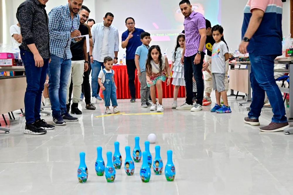 此外,家屬們參加公司準(zhǔn)備的親子活動(dòng),活動(dòng)內(nèi)容包括趣味保齡球、禮物套圈圈等,派駐中方員工子女與埃方員工子女同臺(tái)競(jìng)技,趣味十足。之后孩子們又前往游樂園游玩了碰碰車、卡丁車、旋轉(zhuǎn)木馬、室內(nèi)障礙穿越等娛樂項(xiàng)目活動(dòng)。巨石埃及公司采購部經(jīng)理助理?xiàng)钛蟮膬鹤訔钭影海诎职謰寢尩呐惆橄聼o比興奮:“我的爸爸是個(gè)大忙人,經(jīng)常不能陪我,今天他陪了我一整天,我很高興,而且我今天認(rèn)識(shí)了很多埃及的小朋友,我們一起玩了蕩秋千!”