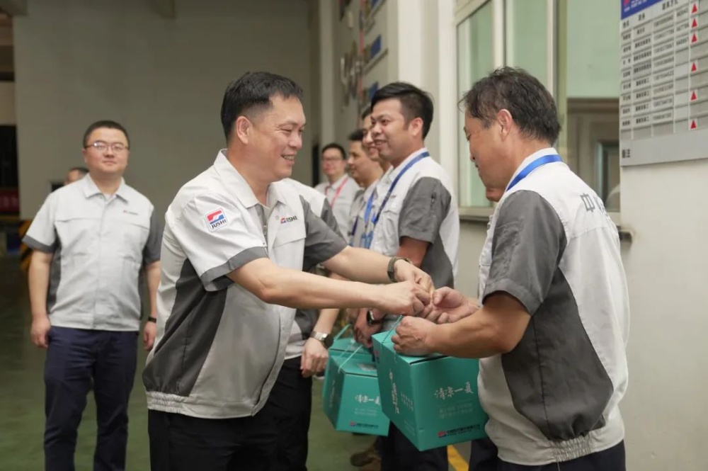 “大家辛苦了!感謝大家!”在五分廠和磊石公司,楊國明總裁如一位老友一般親切慰問熱情堅(jiān)守生產(chǎn)一線的員工,向他們給予最衷心的感謝和親切的慰問,為他們一一送上清涼,叮囑他們要做好防暑降溫工作,共同對抗高溫,保障生產(chǎn)。他叮囑相關(guān)負(fù)責(zé)人要密切關(guān)注氣溫變化,認(rèn)真落實(shí)防暑降溫措施,備齊防暑藥品,切實(shí)保障員工健康權(quán)益。