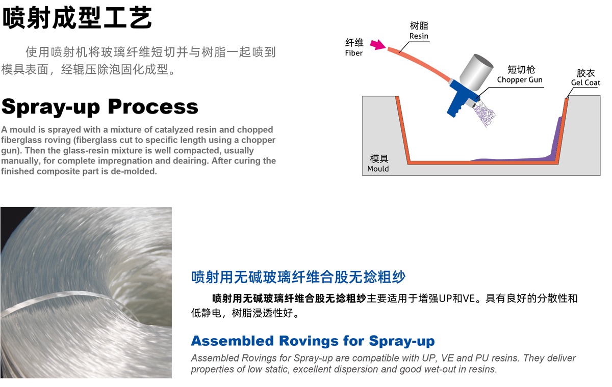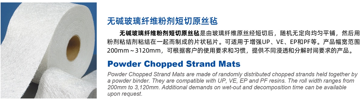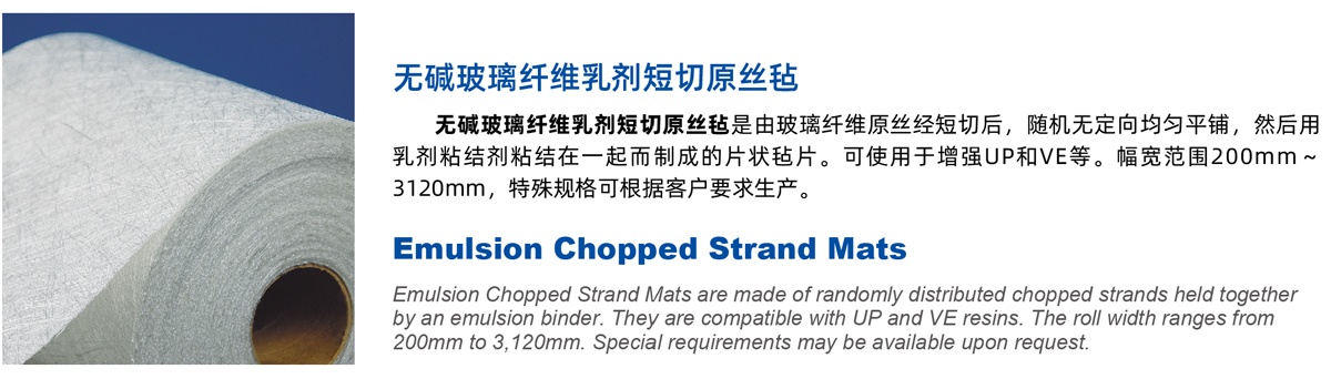 | E20 | 覆模性好,樹脂浸穿性好,浸透速度快,氣泡容易排除,減少輥壓次數, 樹脂消耗少,制品機械強度高,優(yōu)異的耐酸腐蝕性 Good moldability, good wet-through and fast wet-out in resins, rapid air lease reducing rolling out times and increasing productivity, low resin consumption, high mechanical strength of composite products, superior acid corrosion resistance |